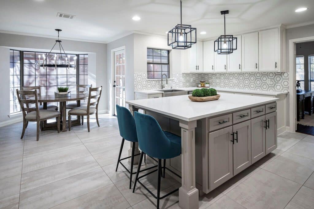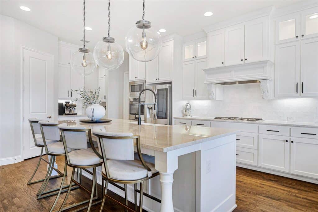 According to listing agent Phillip Tilger, this thoughtfully and beautifully updated home in Plano’s coveted Parkway Estates “has it ALL!” For starters, two huge living areas (one with 14-foot ceilings), tons of natural light, plus an office, and a gorgeous kitchen with a giant island, custom cabinets, Italian quartz countertops, a five-burner gas range, and that marvelous invention – soft-close drawers.