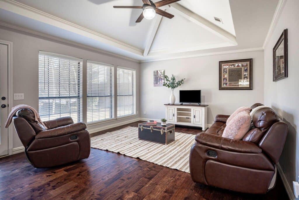 This newly updated 2017 home is in the highly desirable Mustang Lakes community, which has stocked ponds, a gym, multiple outdoor pools and several playgrounds. Highlights include a custom office with designer built-ins, Restoration Hardware lighting throughout, all bedrooms on the main floor, a media room with custom lighting, surround sound, and power reclining chairs, and recent kitchen upgrades with luxury quartzite, custom backsplash, and hardware. It’s move-in ready, so let’s get your move on! Offered for $899,000.