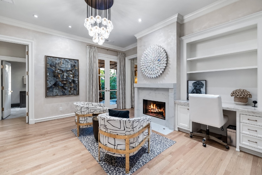 The primary suite is another enchanting space. The sellers, intending for this to be their long-term Dallas home, made it an unparalleled sanctuary with something for every whim. You can read by the sitting area’s fireplace on a cozy night, start your day blissfully at the coffee bar, or step out to your private porch for yoga in the sun. His and hers closets and bathrooms make the suite feel more like its own wing of the house. A place that’s just yours where you can truly relax.