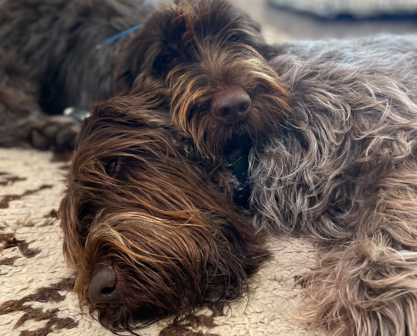 This is Frank’s house. Frank is an award-winning Wirehaired Pointing Griffon. Frank is frankly fabulous. He lives in this beautiful Briarwood home with his owner, independent film producer Katherine Harper, and his little fur brother Carl.
