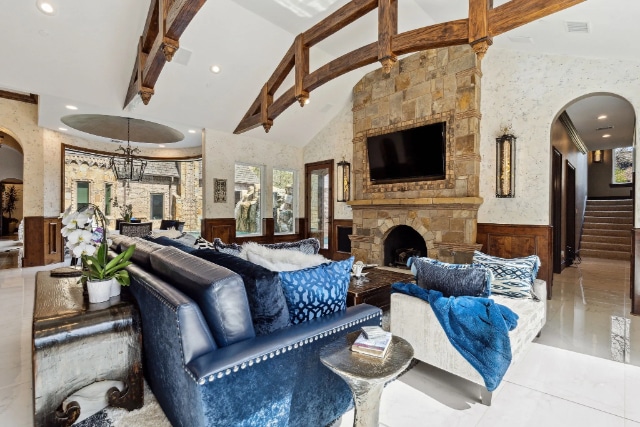 Isn’t it nice that you don’t have to cross the Atlantic to find your fantasy home? This iconic Southlake castle offers much more than just enchanting architecture, however. It has a swim-through grotto and a two-story closet and was recently taken to an entirely new level by designer Nick Alain and the team from Luna Bella.