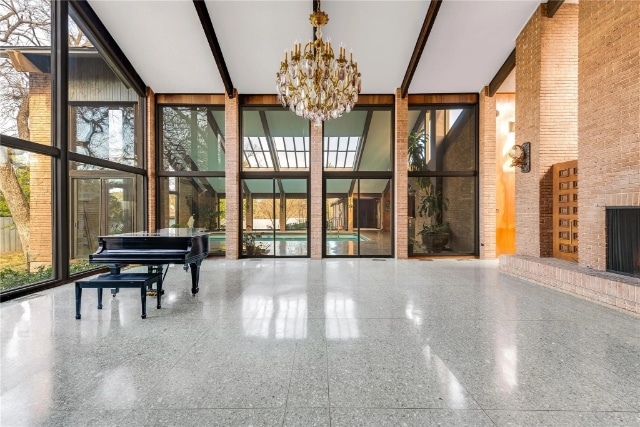 The successful collaboration between Mr. and Mrs. Jones and Morgan is evident when you enter the carved double doors and step into the dramatic soaring, vaulted-and-beamed great room overlooking the indoor pool.