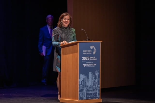 Downtown Dallas Inc. president and CEO Jennifer Scripps highlighted the passage of Proposition A, which will fund, through a 2 percent increase in hotel occupancy taxes, renovations at the Kay Bailey Hutchison Convention Center Dallas and Fair Park.