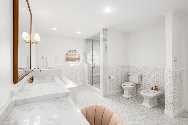 There is no carpet in the home. That’s a huge benefit. Windows in some rooms have been turned into French doors, and the colors and materials are muted and yet clean and crisp.