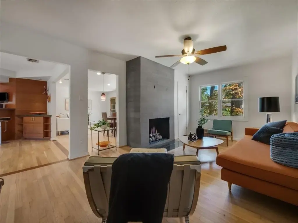 As you approach, you’re greeted by the shade of towering trees and the inviting ambiance of an outdoor gas firepit — in the front yard. Yes, it’s that kind of neighborhood. One where a friendly wave at the neighbors is more likely replaced with a wave over to join them.