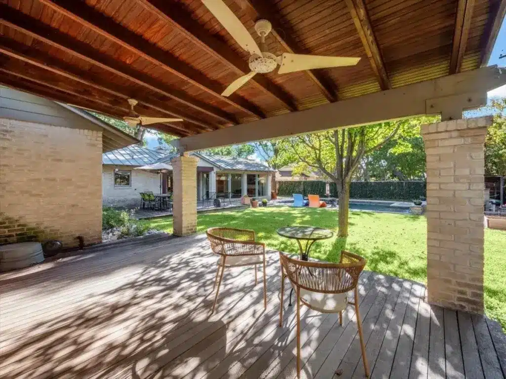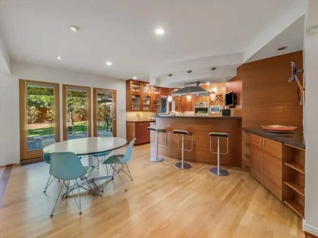 The breakfast room effortlessly connects to the aforementioned family room, offering access to the backyard, where an Ipe wood deck sets the stage for outdoor dining experiences. Yeah, this house woods as the kids would say.