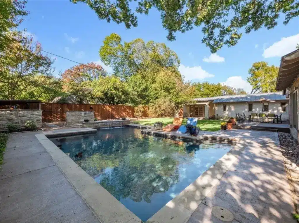 Now, here’s a daltxrealestate.com archive/time travel bonus: a look at 9623 Athlone Drive the last time we featured it in July 2014. Executive Editor Jo England gives ALL the deets on this home’s incredible renovation and exotic kitchen design “made with Makore wood, a type of African cherry, and has the most gorgeous grain that spans across the entire kitchen.”