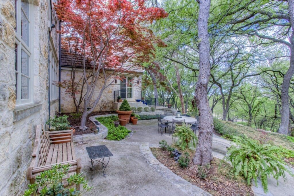 Eclectic is overused but what if the adjective fits? The listing describes the style as a hybrid mix of Austin Hill Country, Frank Lloyd Wright, and Japanese. I’ll quibble with Austin Hill Country. The exterior is of this Mira Vista manor is covered in Austin stone but the ambiance feels more Anglophile than Hill Country. I get the Frank Lloyd Wright vibe. The floor plan is open with few doors with areas demarcated by columns or changes in levels. Japanese? Well Japanese architecture was one of the principal influences in Wright’s architectural language and the light maple trim and columns do have a Japanese aura.
