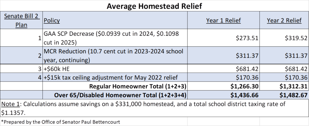 I had many questions, so I called up State Sen. Paul Bettencourt‘s office after receiving his press release since he is a major author of the bill and a cheerleader for property tax reform. David Clark (a committee director in his office) answered a few.