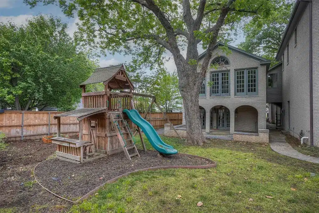 With or without arches, there’s plenty to love about this house, starting with the gorgeous trees found in Fort Worth’s beautiful Monticello neighborhood. Priced at $1.599 million, the house features five bedrooms, six bathrooms, and a 267-square-foot guest house.