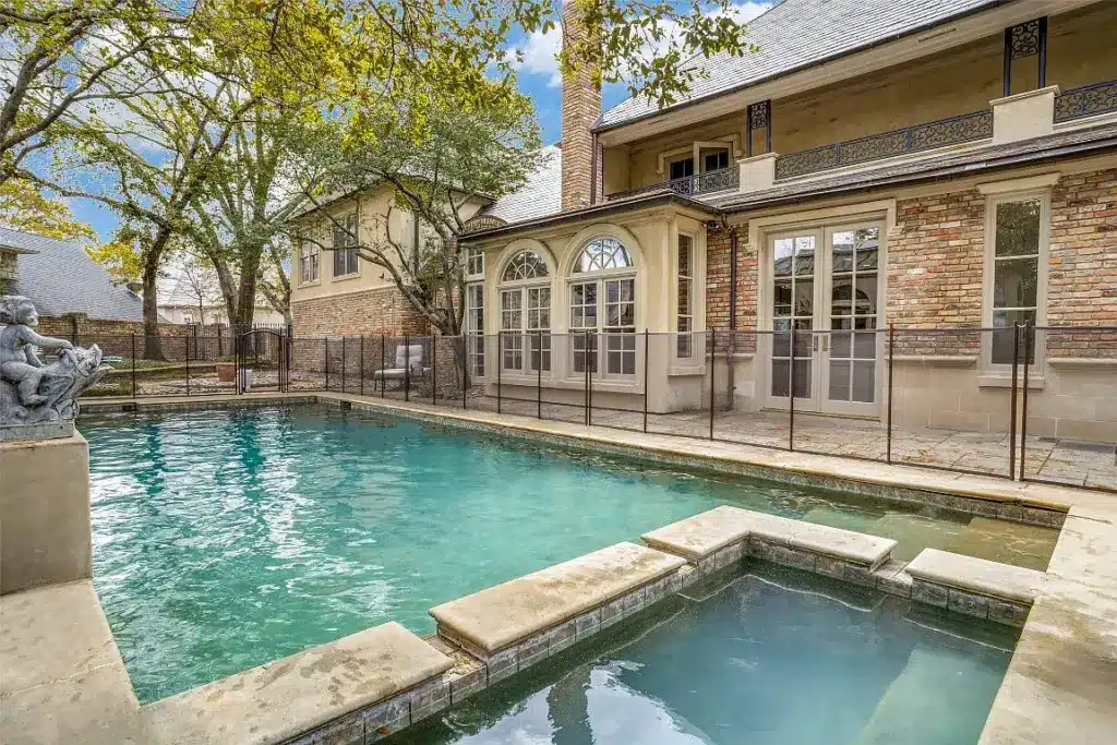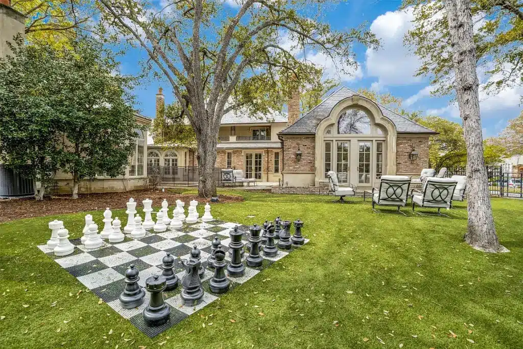 The first-floor owners’ suite features French doors that open to the patio, overlooking a spacious backyard, large enough for a pool, should Texas’ summers require one. The second floor offers a game room with a wet bar and fireplace, perfect for entertaining in any season.