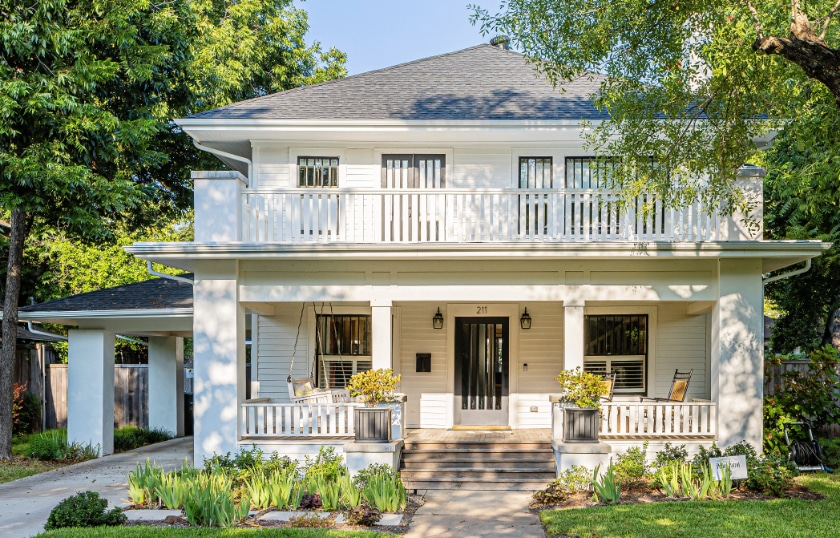 Our preview of the Heritage Oak Cliff Fall Home Tour begins in 1916 when this stately Rosemont Avenue four square was built. The house was constructed in Winnetka Heights three years after downtown Dallas’ Busch Building (Kirby), four years after Adolphus Hotel, and six years before Magnolia Petroleum Building when the neighborhood was being marketed as Dallas’ “Ideal Suburb.” Originally included in the Midway Addition to the city of Oak Cliff in 1890, it was replatted as Winnetka Heights in 1908. Leslie A. Stemmons was one of the developers of the subdivision.