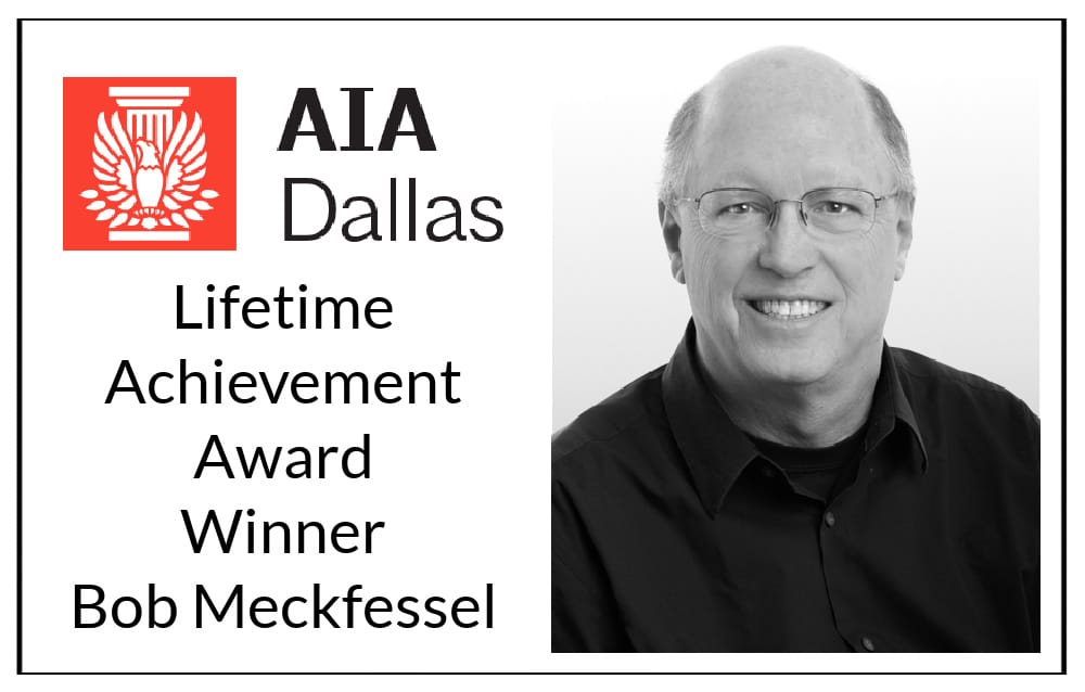 It’s not hard to imagine as the years turn to decades that the many Bob Meckfessel designs sprinkled throughout North Texas will become sought after like the E.G. Hamiltons, George Dahls, Arch Swanks, Bud Oglesbys, and Howard Meyers of today. Therefore, we aren’t surprised at all that Meckfessel was announced today as the winner of AIA Dallas’ Lifetime Achievement Award.