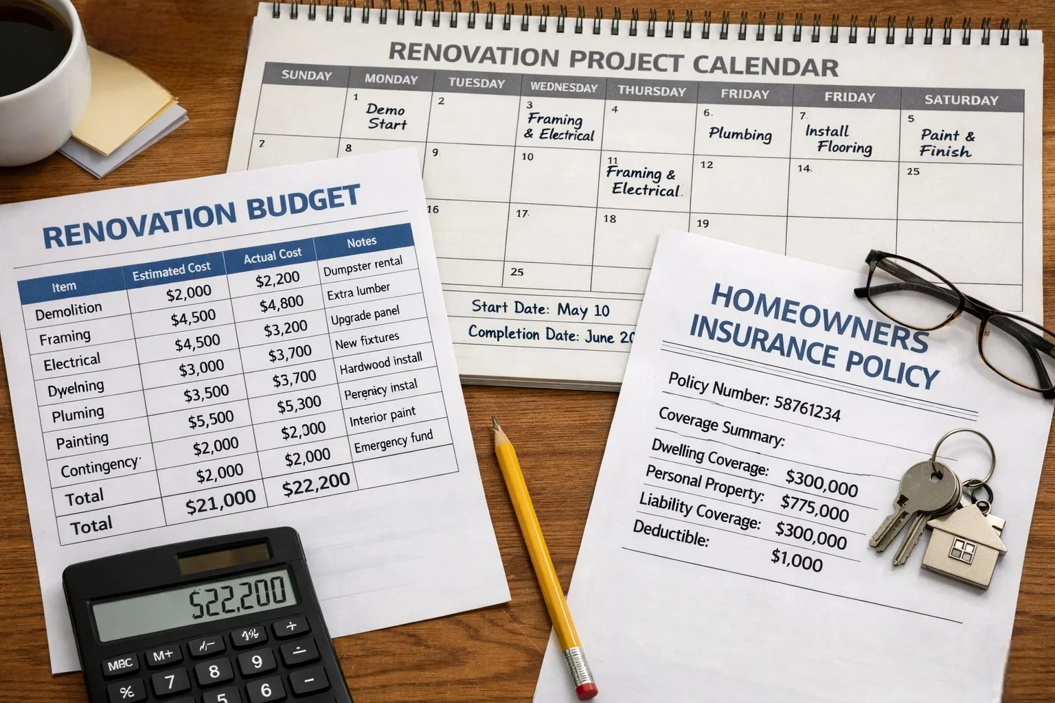 Evaluating the true value of a renovation project helps determine the right coverage level. Investors should consider the full projected value after renovation, or ARV, rather than just the purchase price. Materials, labor costs, and improvement expenses all add to the property’s total risk exposure.
