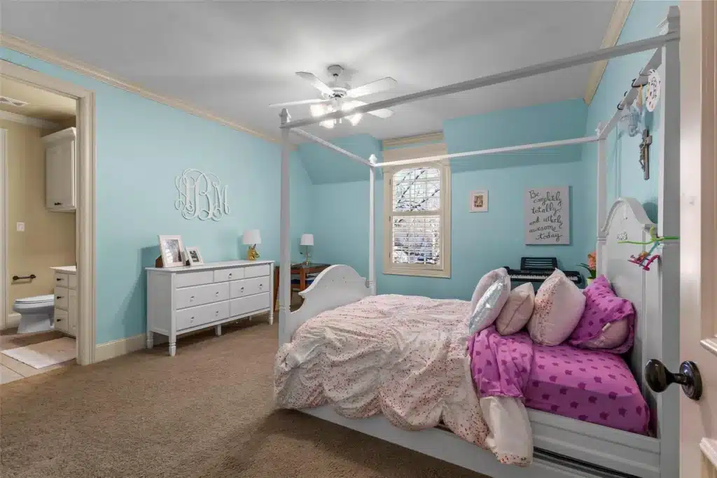 Upstairs are three bedrooms, all with ensuite baths, and a game room and a media room. You know what that means? What tweens having dance parties at midnight?! You may never see your kids again except for meals.