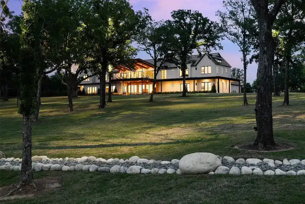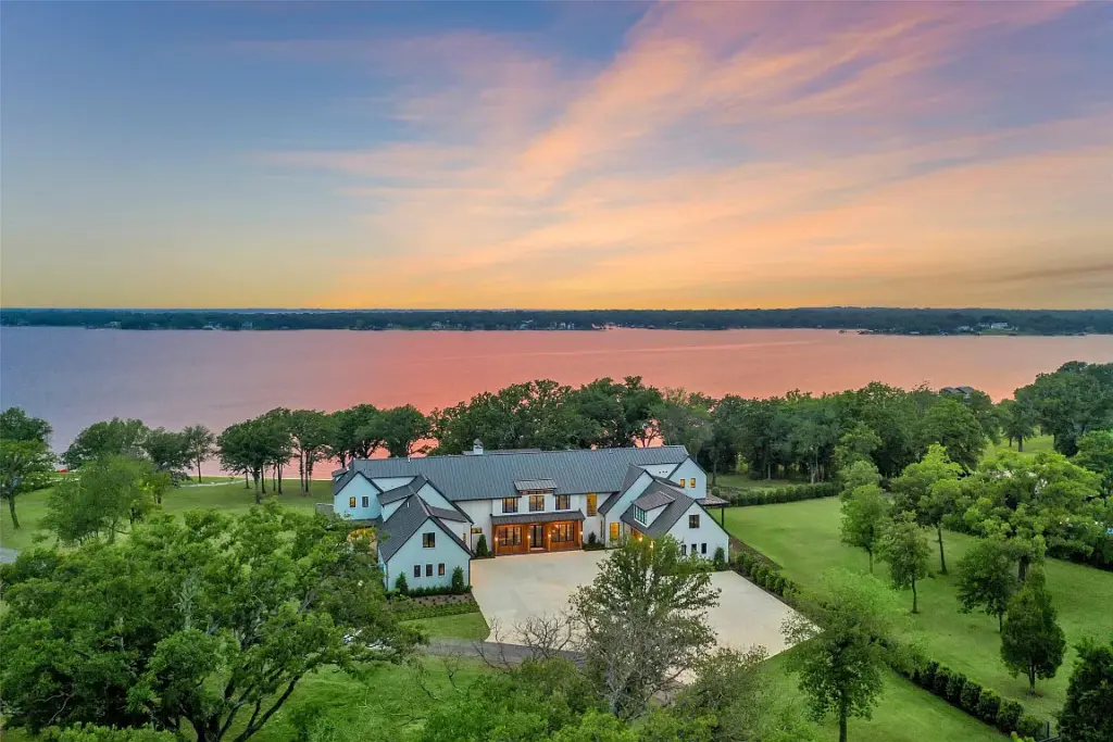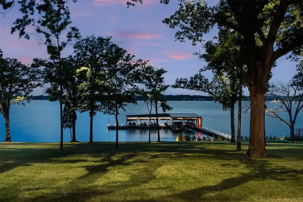 Black has a Cedar Creek Lake listing called Barron’s Lakeside that checks all the boxes — a jaw-dropping main home, featuring 14,000-square-foot under roof on nearly 30 acres with generous lake frontage, a private boathouse, indoor and outdoor amenities, and multiple guest homes. It’s a legit compound or dream corporate retreat.
