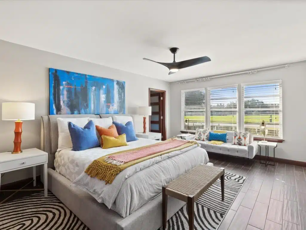 Built in 2022, this home sits on almost a full acre and offers everything a contemporary design fan looks for. It’s priced at $1.28 million and features three bedrooms, all with accompanying ensuite bathrooms. The large windows throughout allow natural light to pour into the rooms featuring high ceilings. Warm wood floors and quartz countertops give the house a sophisticated touch.