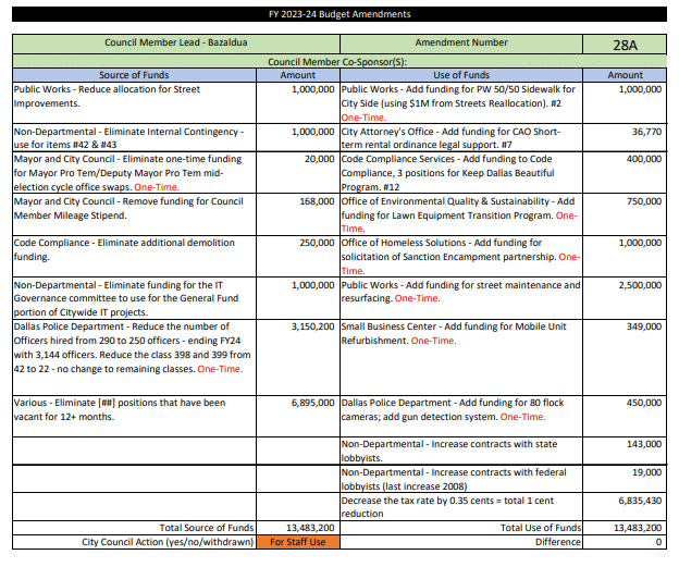 Earlier this month, council members offered 63 amendments to City Manager T.C. Broadnax’s proposed budget, based on a property tax rate of 73.93 cents per $100 assessed valuation.