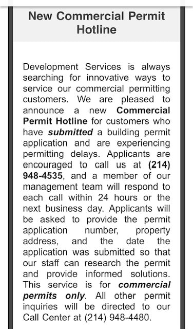 Permitting offices are in the process of moving from Oak Cliff Municipal Center on Jefferson Boulevard to Stemmons Freeway, with an anticipated completion date in October. That should improve communication and efficiency, Al-Ghafry said.