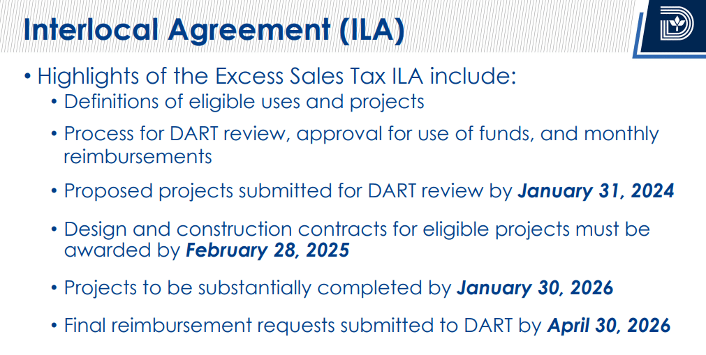 “It came down to either trying to figure out how we got to a more reasonable number or ending up at a stalemate and not getting any money. I’m comfortable where we are and I’m recommending that we move forward and hold staff accountable as well as DART when it comes to where we are with the timing and the release of those dollars.”