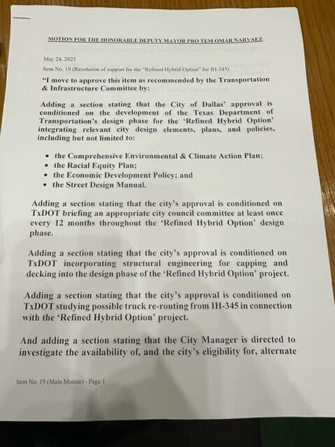 Motion to Approve I-345 Refined Hybrid Trench Option With Conditions