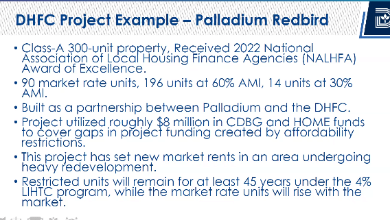 The PFC has only taken on ground-up development, Eaquinto explained. He highlighted the 212-unit Oakhouse development will offer 50 percent affordable units at Colorado Boulevard in North Oak Cliff.