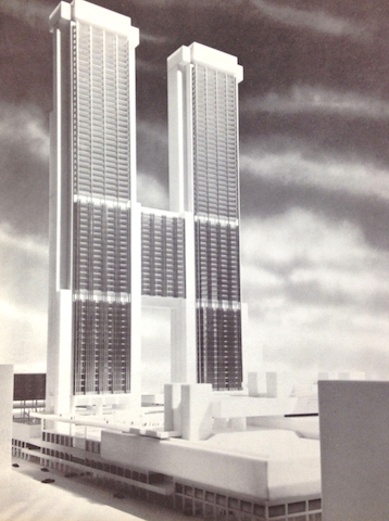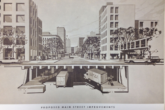 By the mid-1960s, things continued to spiral out of control. Grandiose plans were proposed that included replacing the entire downtown core with multi-layered superblocks, moving sidewalks, sky pods, an underground network of freight tunnels, and even 300-foot-deep mechanical parking pits for cars.