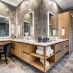 And here downsizing doesn’t mean downsizing your wardrobe. With its opulent gilt and verdigris cabinets, the master closet/dressing room is a real stunner and nothing short of sumptuous.