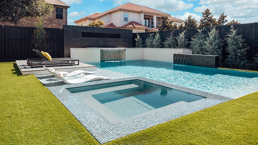 Pool and landscape designers collaborate with the company’s in-house architects and interior designers. The end goal? To find uncommon materials and install them in a way that will bring exciting new style trends to the Dallas market.
