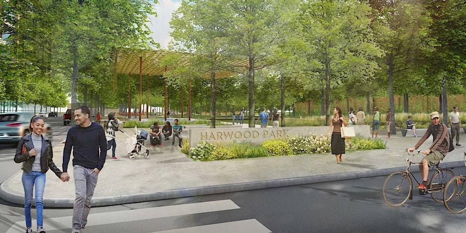 Harwood Park officially opens with a dedication at 9 a.m. on Saturday, Sept. 23, featuring Dallas Mayor Eric. L. Johnson, DDI President & CEO Jennifer Scripps, and Downtown Dallas Parks Conservancy leaders Robert Decherd and Amy Meadows.