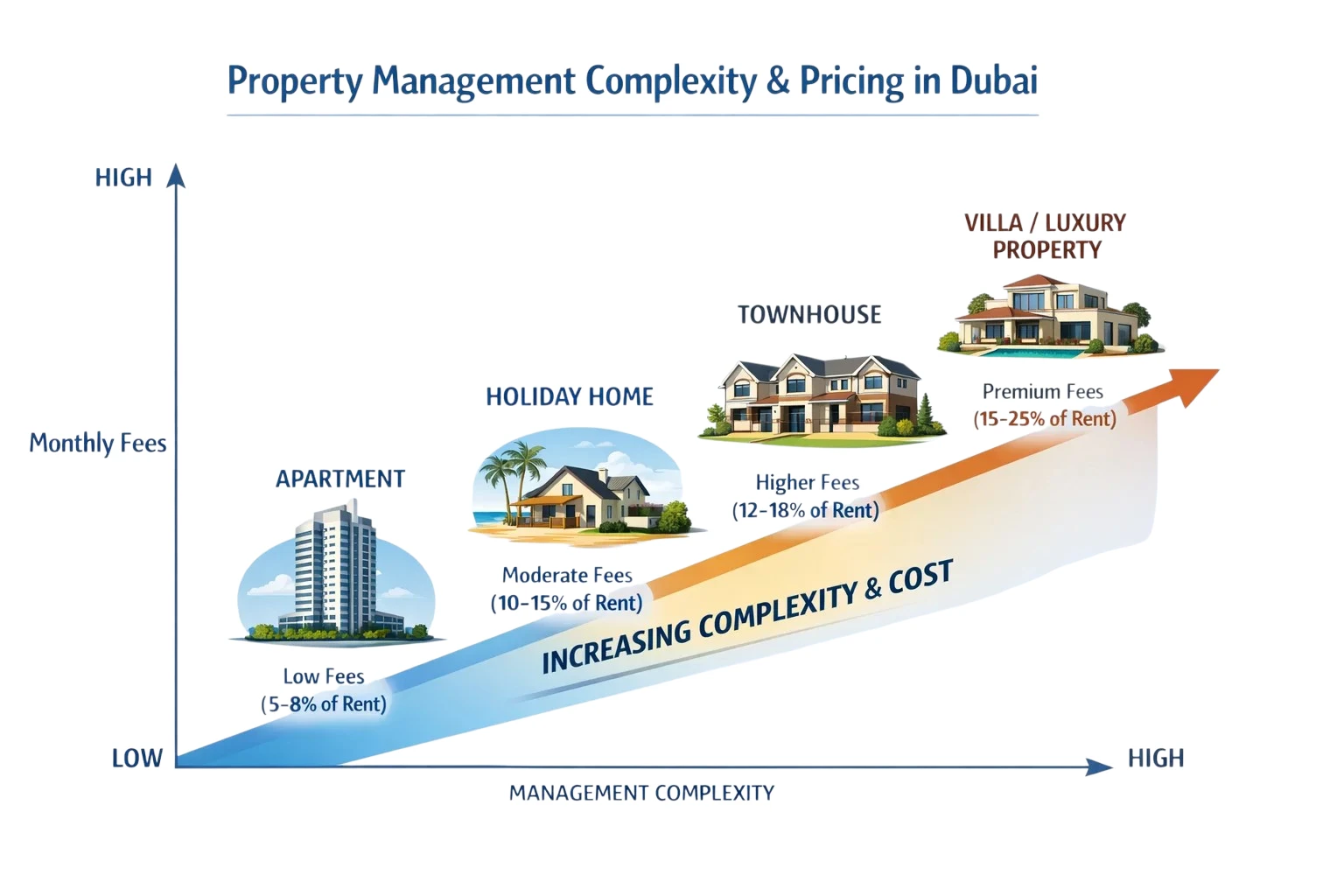 Location is another big factor in Dubai. Properties in high-demand areas may cost more to manage because of competitive service standards and tenant expectations.