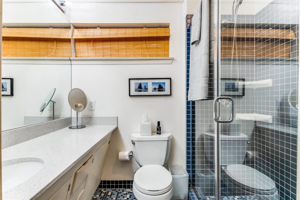 These owners love Midcentury Modern. They obsess over the details and the one time they did need to update the bathroom, they did it in a way that you would never know. (Two-by-two-inch tiles.)