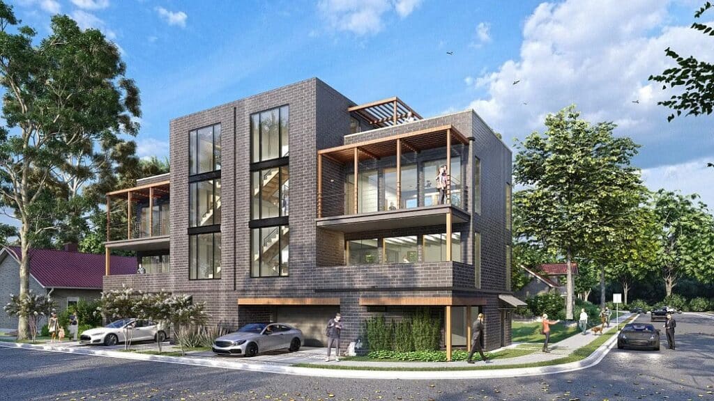 It’s no wonder then that you’ll feel like you’re in a luxury hotel as soon ascend from the first floor with an ensuite bedroom and garage into the main living area, made dramatic with a wall of windows and a high ceiling with wooden beams. Well, theoretically. I haven’t actually stepped in the home — no one has — because it’s not expected to be complete by mid-summer. But if Murrell says it’s going to be grand and elegant like a luxury hotel, then it will be.