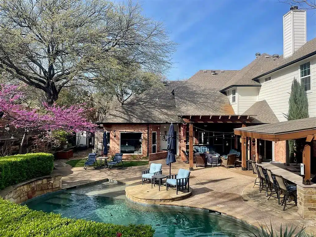 A homebuyer will be saying “ahhhh, this is the life,” at this Grapevine home. Floating in the newly-replastered pool, the homeowner can enjoy the rock waterfall and invite five friends to enjoy the six-person hot tub.