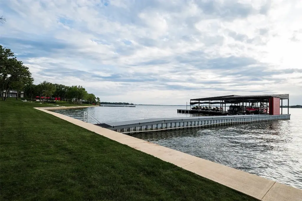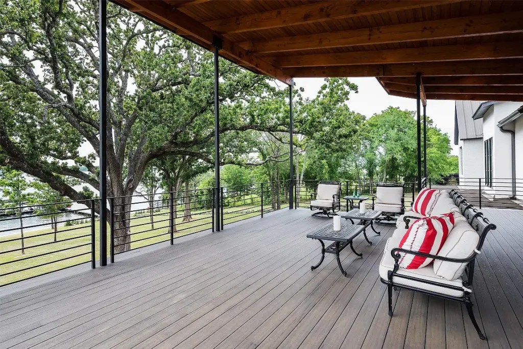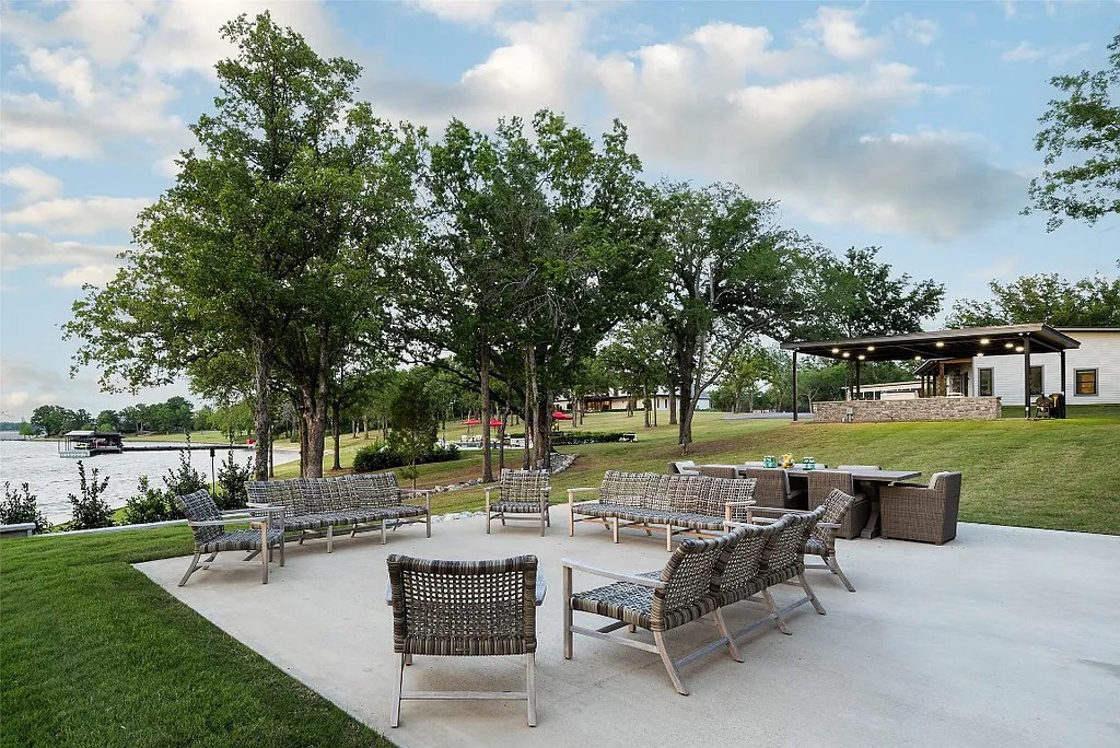 Finally, the listing agent Juli Black let us in on a little secret about the location. “It’s nestled between large neighboring compounds on this quiet peninsula of Caney City, so together there are nearly 80 acres of serene and picturesque private land on the deep end of Cedar Creek Lake.”
