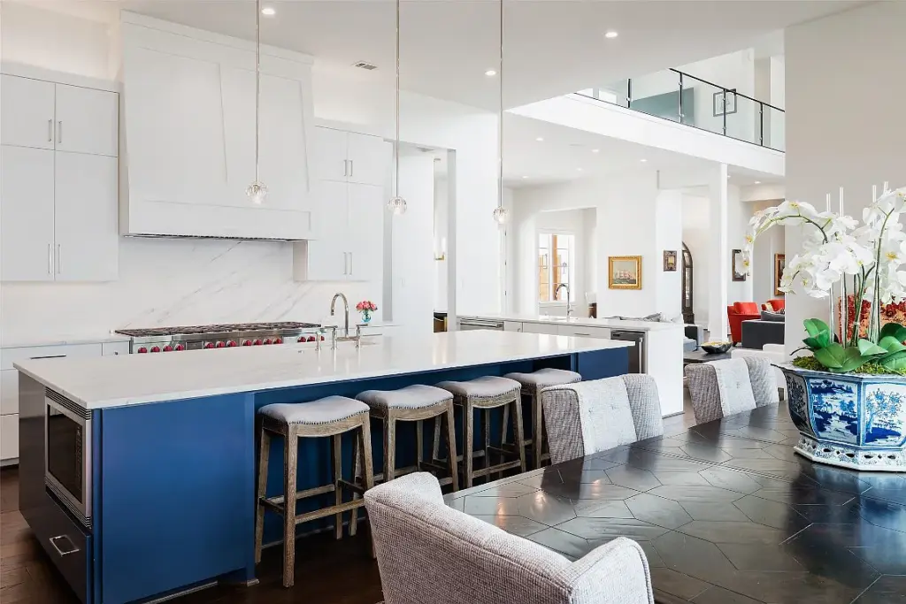 It’s morning when you arrive at the tree-lined gate, where you’ll notice the attention to detail. Every tree that graces the landscape was hand-picked by the original owners for the master plan, transforming the native land into a meticulously landscaped oasis. The owner even sodded nearly the entire property, creating lush green surroundings that evoke the ambiance of a prestigious Preston Hollow estate.
