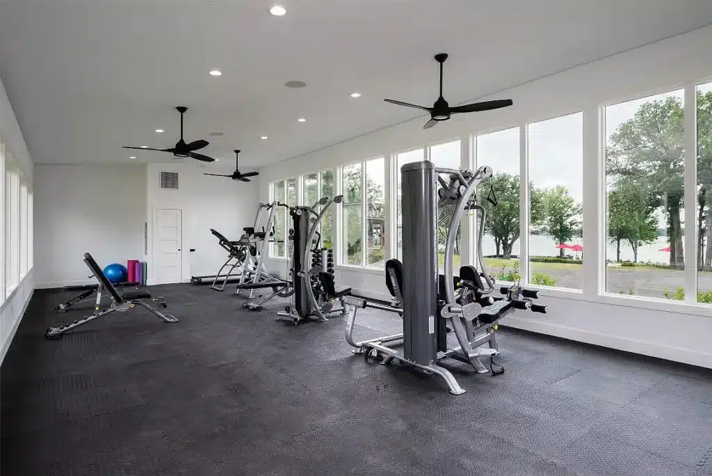Practice your swing on the tennis court or turn it into a pickleball court for a full-fledged tournament. Hit the basketball court or take a dip in the sparkling pool. Or perhaps you just want to retreat to the glassed-in fitness and yoga studio with peaceful water views, providing the perfect space to stay active while enjoying the serene surroundings.
