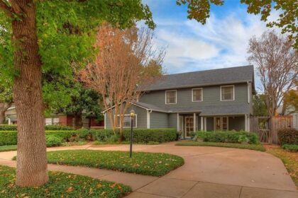 Splendidly sited, on a high Mistletoe Heights bluff, this historic house was built in 1919 for the legendary Waggoner family of Waggoner ranch fame. It was first owned by Anne Waggoner. The hipped roof, Prairie Style Villa with its strong horizontals and gratifying symmetries, presents a formidable facade to the street. A beautifully landscaped, 1.32 acre lot, with the expected mature trees descending in back to the Trinity River, affords gorgeous western perspectives which can be enjoyed from a large independent viewing deck.