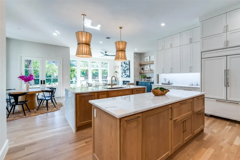 Prepare to be absolutely wowed by the completely redesigned kitchen where every detail has been meticulously crafted to perfection. It’s truly an entertainer’s dream with not one, but two islands! Yes, you read that right—two islands, two dishwashers, and two pantries. The marble countertops, paired with Brizo fixtures, create an atmosphere of unmatched luxury that’s hard to resist. Equipped with a 48-inch Sub Zero refrigerator, a 48-inch dual-fuel range with a vent hood, and a convenient pot filler, this kitchen is a haven for both cooking enthusiasts and those who love to entertain.