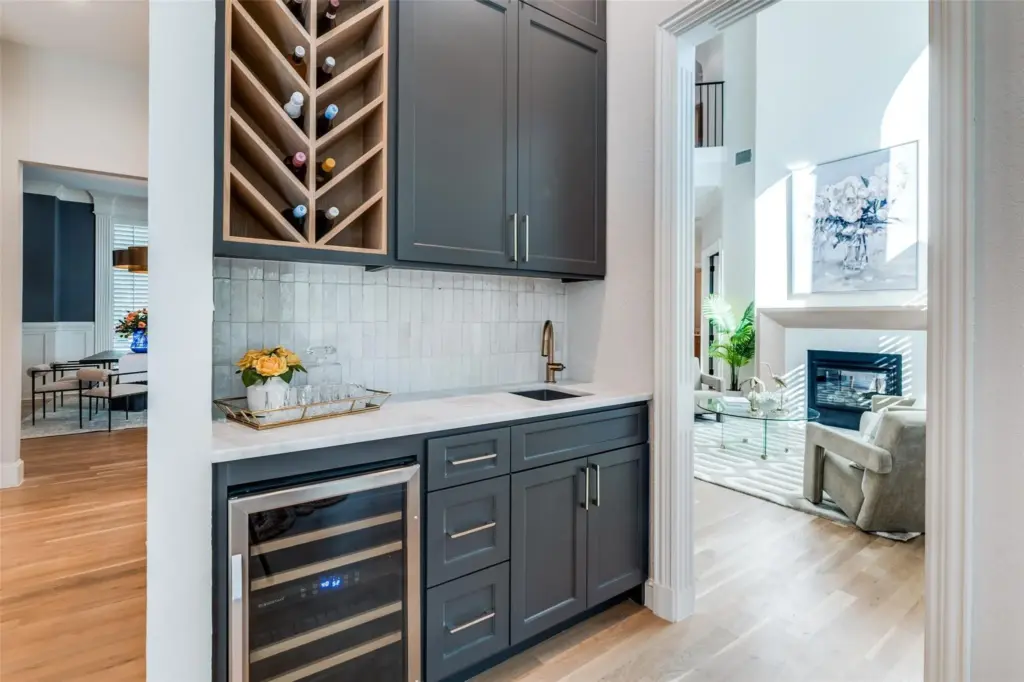 And if wine is your jam, a built-in wet bar with a wine fridge and decorative wine storage complete this gourmet paradise.