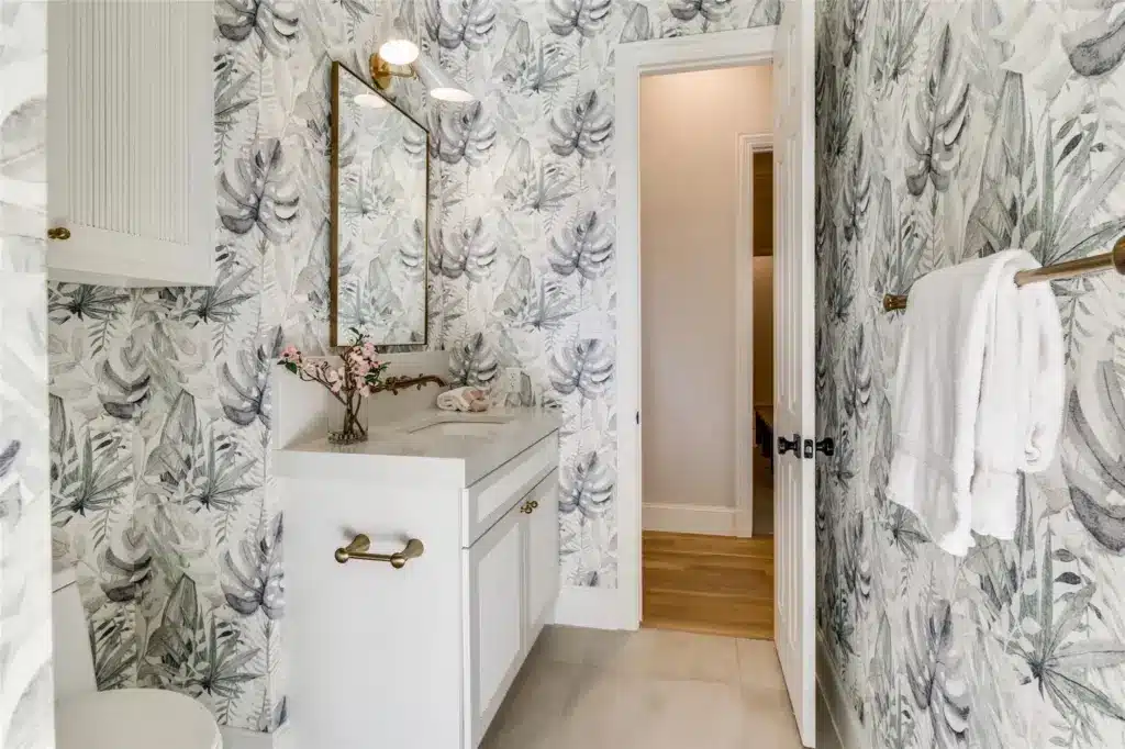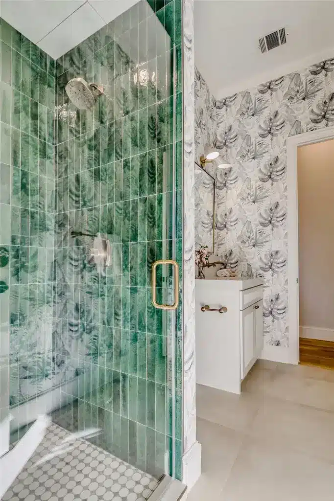 “You Oughta Know,” every detail of this redesign has been meticulously considered, down to the full pool bath. With its designer wallpaper, updated light fixtures, wall-mounted faucet, exquisite marble floors, and dazzling green tiles, it’s a space that will undoubtedly impress and delight your guests.