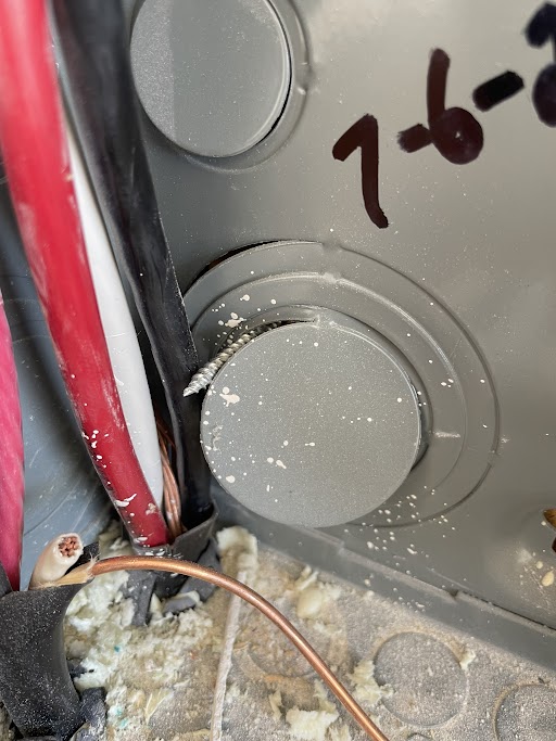 In this column about Electricity Don’ts, we shared some ridiculous renovation fails, a DIY doozy, and this extreme close call with a screw: