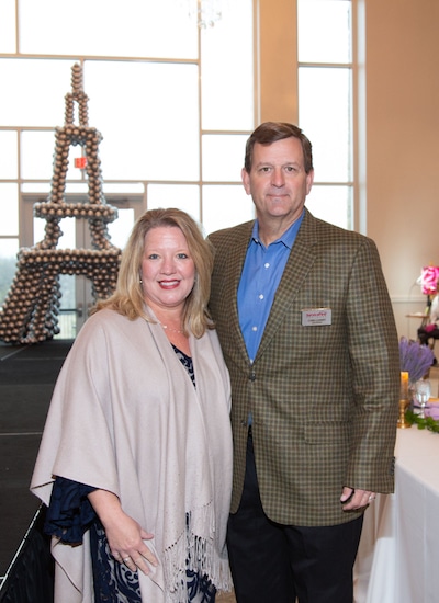 The program opened with a welcome — all in French — was delivered via Joanne Viaud, native French speaker, club member, and co-owner of Metroplex Balloons, the creators of the balloon Eiffel Tower. A champagne cork pop from the bar appropriately punctuated her remarks. “Perfect timing,” laughed party attendee Lauren Baccus, community relations liaison for Tri-County Electric. Following foundation board president Greg Kocian offered his English version of bienvenue then came “The Double Ds,” as co-chairs Debbie and Dorene like to refer to themselves.