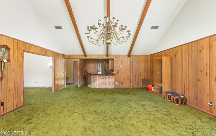 You gotta love the formal living room. And no, they did not lay extra carpeting outside. The grass matches the shag. All I have to say is “Bravo!”
