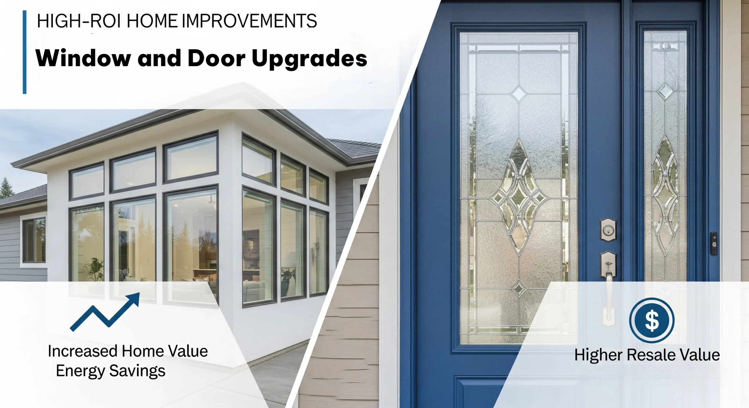 A homeowner can change the character of their home by installing replacement windows and doors. These upgrades give your home a polished, move-in-ready look, whether you put in sleek, black-framed casement windows for a modern industrial vibe or a bold, insulated fiberglass entry door with decorative glass.