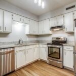 The living area has a painted brick wood-burning fireplace, soaring ceilings, cedar-beam ceilings, and a wall of windows looking out to the serene backyard. This Lake Highlands home has an all-new kitchen with gleaming granite counters that are loaded with storage, compliments of beautiful Shaker cabinets with soft close doors, drawers, and walk-in pantry. Maybe it’s just my personal pet peeve, but I can’t stand slamming cabinet doors. Thank you soft close doors.