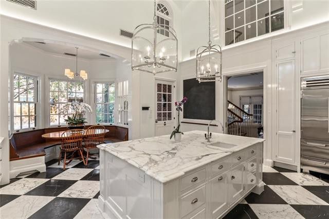 The remodel on this 11,459-square-foot historical Colonial mansion took three years. With five bedrooms, seven bathrooms, and a powder bath, there’s plenty of room for a family and entertaining on a grand scale.