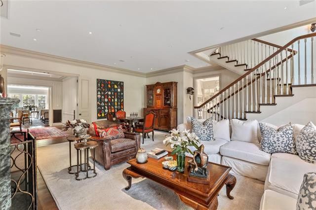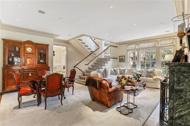 “The house was basically rebuilt,” Compass Real Estate listing agent Dan Rhodes said. “The façade is largely original, but the stone accents had been painted white. Torie had the paint removed then redid all of the mortar on the entire house so the stone and mortar would match. She also removed the hand-blown glass windows on the front of the house and had them completely recreated.”