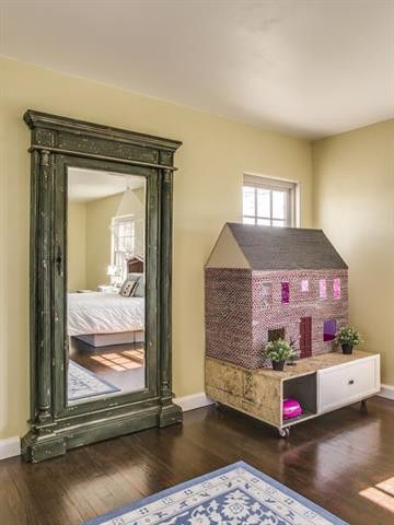 Fairytale cottage indeed! This Drunk Brick four square colonial is about as close to a fairytale as you can get. Not only is it one of the few Drunk Brick homes left in America, but this 1,926-square- foot home also has my absolute favorite feature — a hidden room. Right now, it’s one of the children’s rooms, but I’d pull rank, keep it for myself, and turn it into a mom cave! I’m pretty sure a wine fridge will fit nicely in that space.