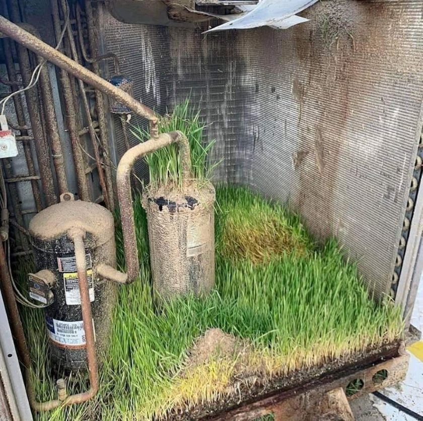 That’s the inside of the outdoor AC component with the front taken off. This thing is so dirty that GRASS is growing on the inside of the unit. There is grass growing on top of the motor in the center. Wait, I feel my blood pressure going back up. Don’t think about this one too hard, just make a note to get your AC serviced before summer, and let’s move on.